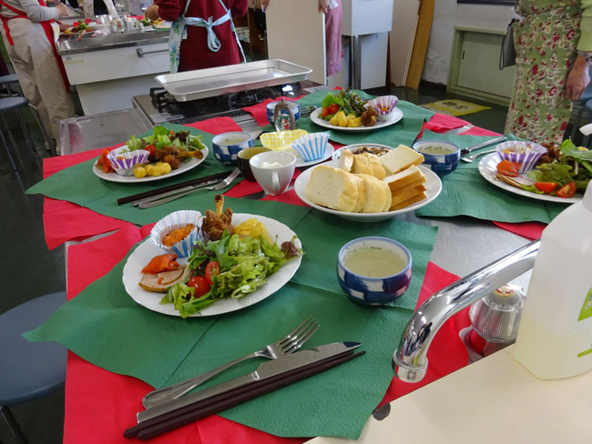 そして飲み物には井筒ワインをご用意。料理は、味も見た目も楽しめるように工夫されており、参加者から大変好評をいただきました。また、井筒ワインは、料理との相性も抜群で、皆様に喜んでいただけました。