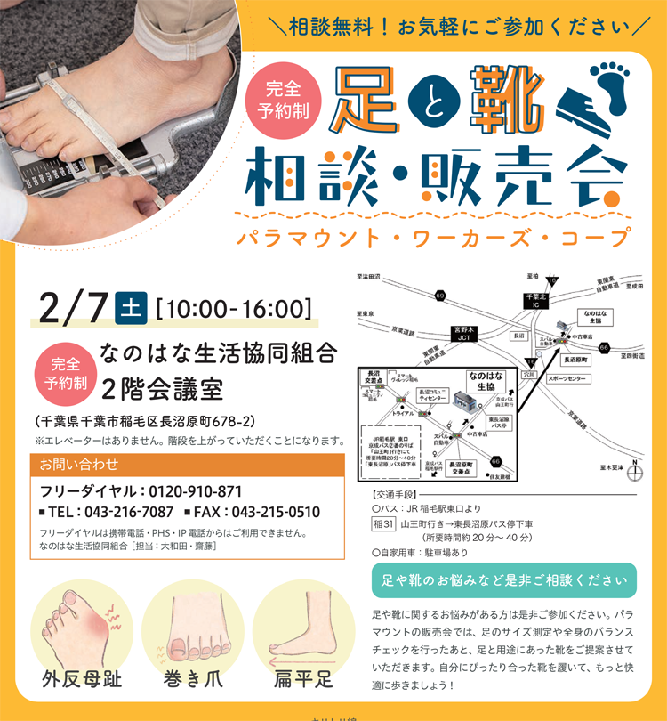 2/7 足と靴の相談・販売会 お申し込みはこちらから▼ 組合員番号(必須) お名前(必須) メールアドレス(必須) ご希望時間(必須) 10:00~11:00~13:00~14:00~15:00~ 当日の連絡先TEL(必須) 同行者がいる場合ご氏名をご記入ください。その他何かございましたらご記入ください。 内容をご確認の上チェックを入れてください 頂いた情報はこの活動のみに使用いたします。 申し込み締め切り1/23(金)