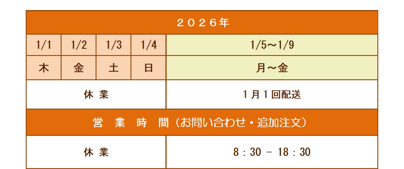 年末年始営業日のご案内 年末年始の営業日についてご案内いたします。2025年、なのはな生協をご愛顧いただき誠にありがとうございます。2026年も引き続きどうぞよろしくお願いいたします。 なのはな生協 📞0120-910-871 携帯からは 📱043-216-7087