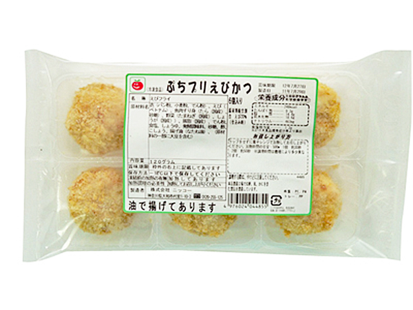 | 原材料 | 衣(パン粉、小麦粉、でん粉)、えび(ベトナム)、魚肉すり身(たら(国産)、砂糖)、野菜(たまねぎ(国産)、しょうが(国産))、豚脂(国産)、でん粉、食塩、しょうゆ、発酵調味料、砂糖、酢、こしょう、揚げ油(なたね油)、(一部に小麦・えび・豚肉・大豆を含む) |